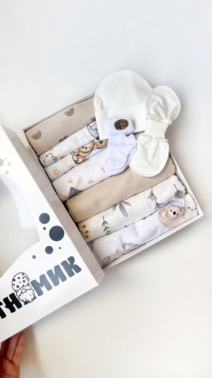 Такий набір можна сміливо дарувати на виписку з пологового, на першу зустріч з малюком або ж на gender party 🎉 Також, складаємо подарункові бокси з наповнення на Ваш смак🕊️